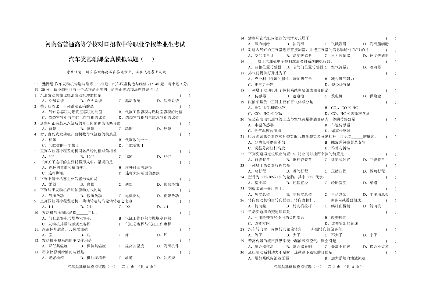 汽车类 基础课 ...