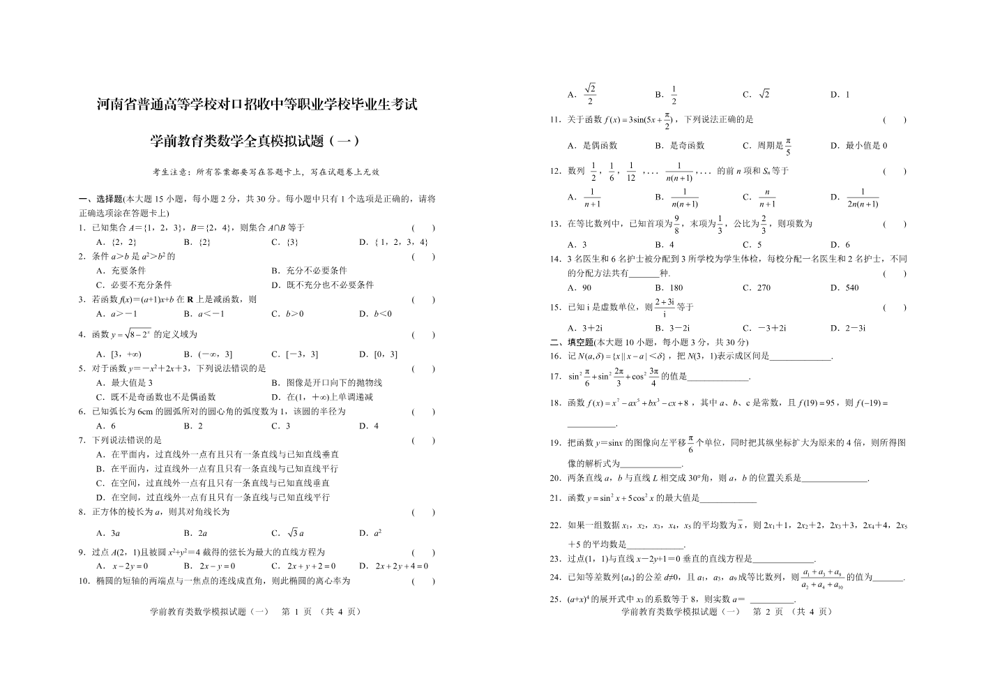 数学 20套综合...