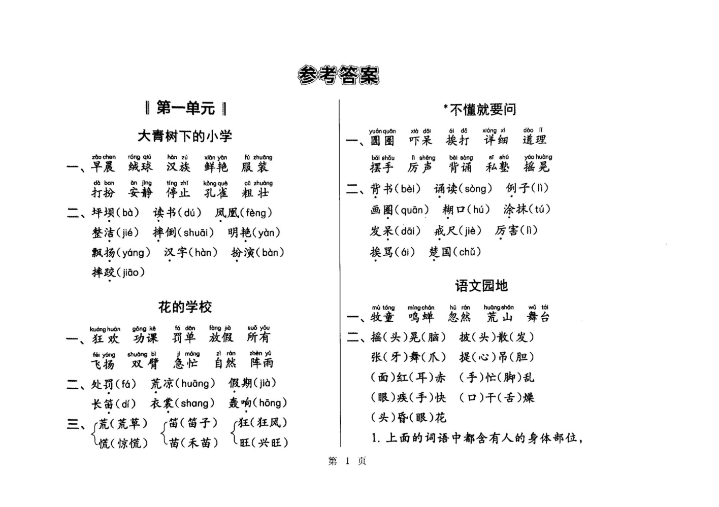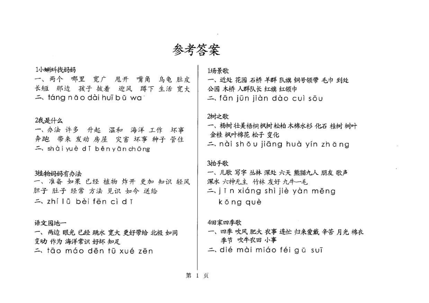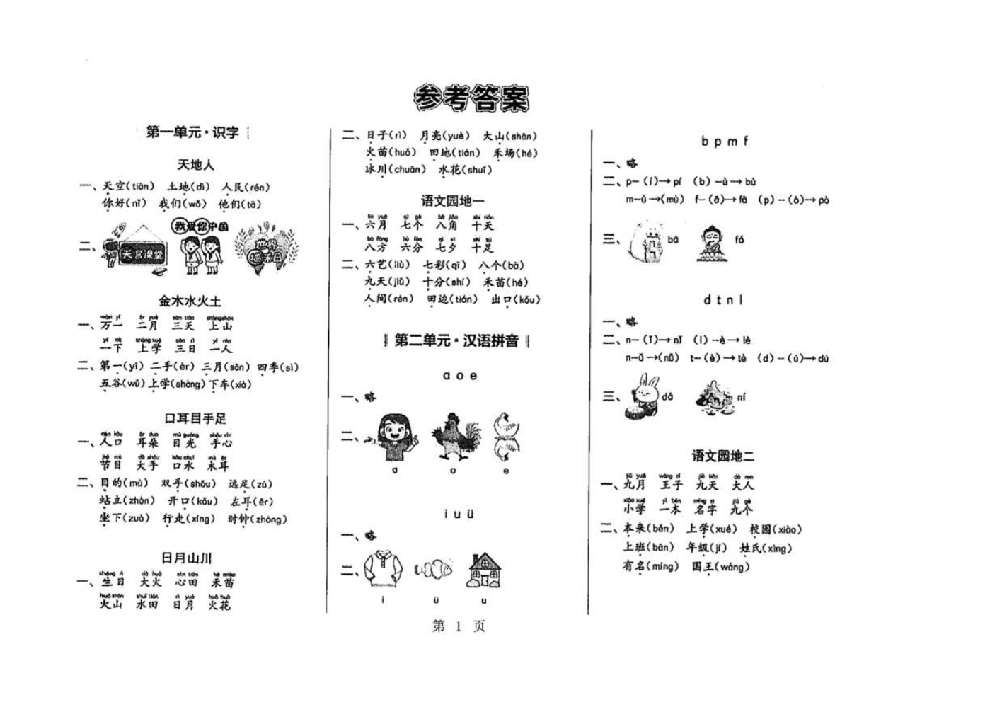 一年级语文答案