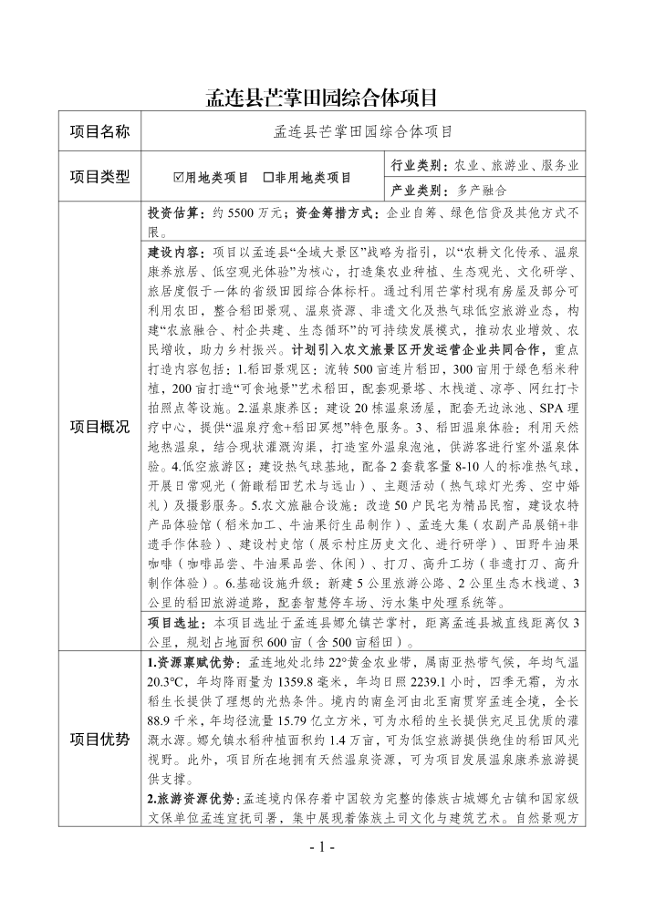 孟连县芒掌田园综...