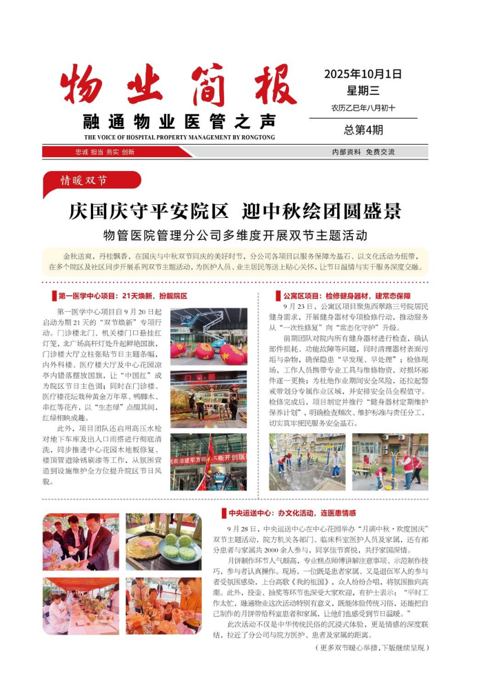 其他信息:《物业简报一融通物业医管之声》电子宣传画册作品由FLBOOK会员于2025-09-09制作并发布于FLBOOK电子杂志制作平台。FLBOOK是一款HTML5电子杂志、电子书刊、电子画册制作平台,使用FLBOOK可以快速制作和发布电子书刊作品。